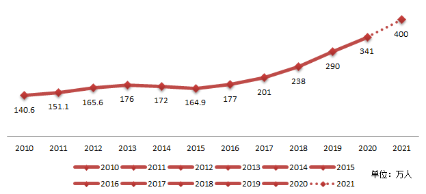 (近十年考研報名人數走勢)