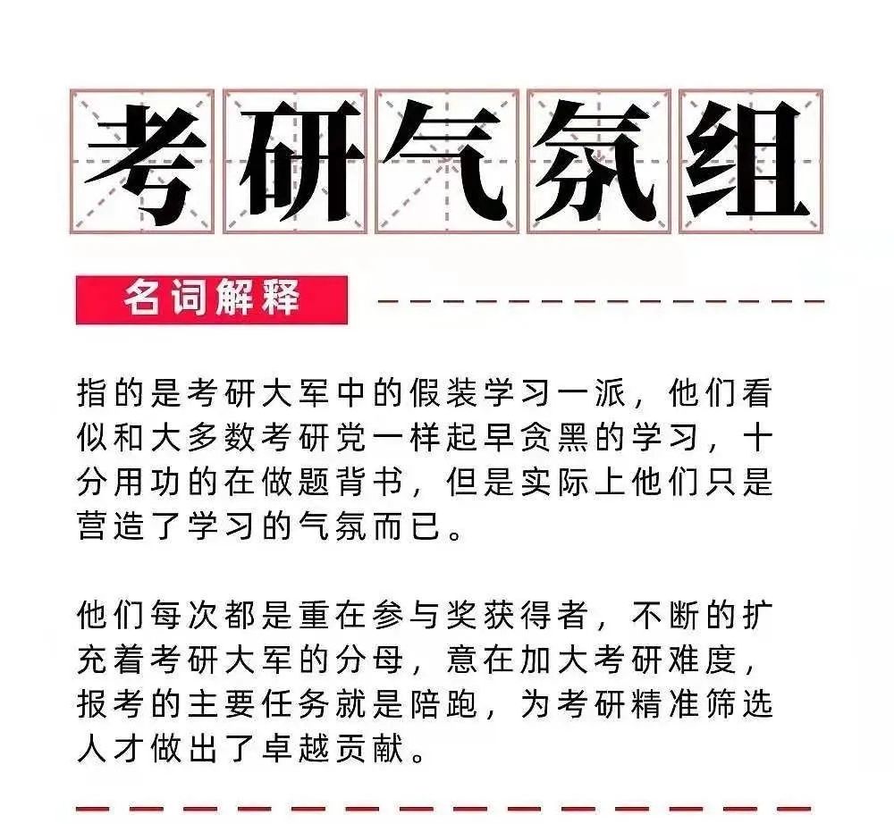 狹義就是像上文的名詞解釋說的那樣——看上去起早貪黑努力學習,其實三心二意,三天打魚兩天曬網的考研人。狹義的考研氣氛組讓人十分好奇:打工摸魚非常可以理解,畢竟是為他人做嫁衣裳;可是考研是為自己,為什么不走心呢?