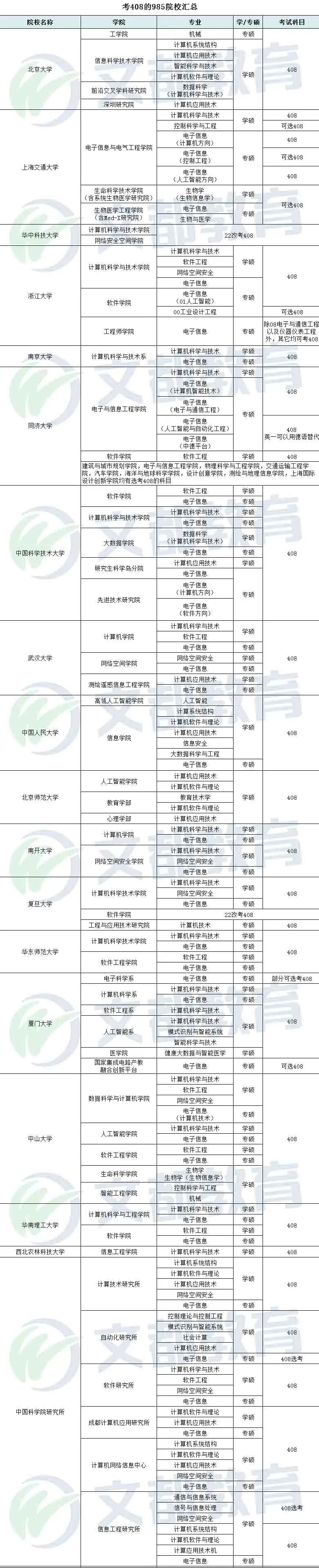 隨著近幾年教育部一直鼓勵(lì)招生單位選用統(tǒng)考科目試卷,不少學(xué)校都陸陸續(xù)續(xù)發(fā)布了改考通知,今天我們就盤(pán)點(diǎn)一下考408(計(jì)算機(jī)學(xué)科專業(yè)基礎(chǔ)綜合)的院校。