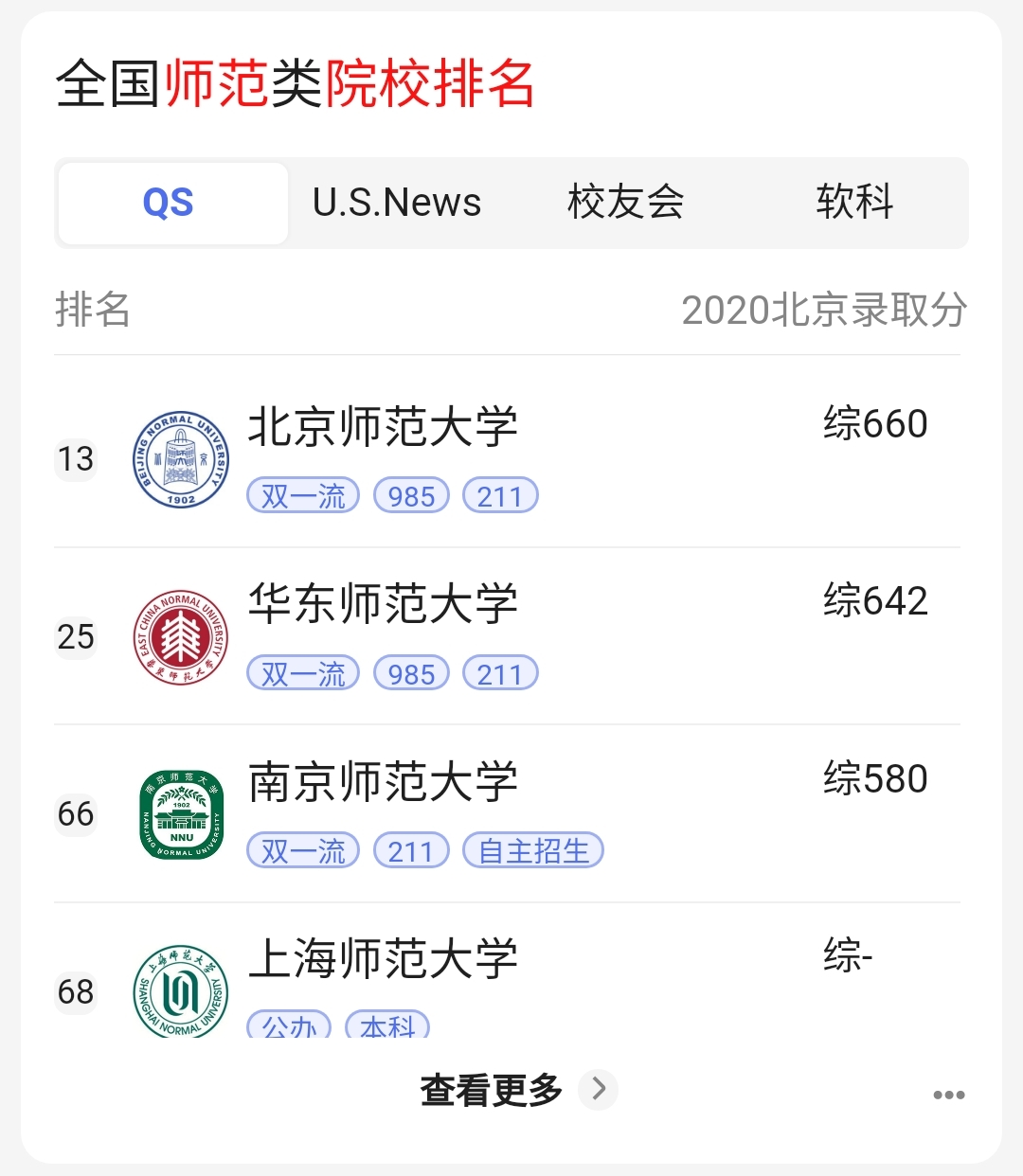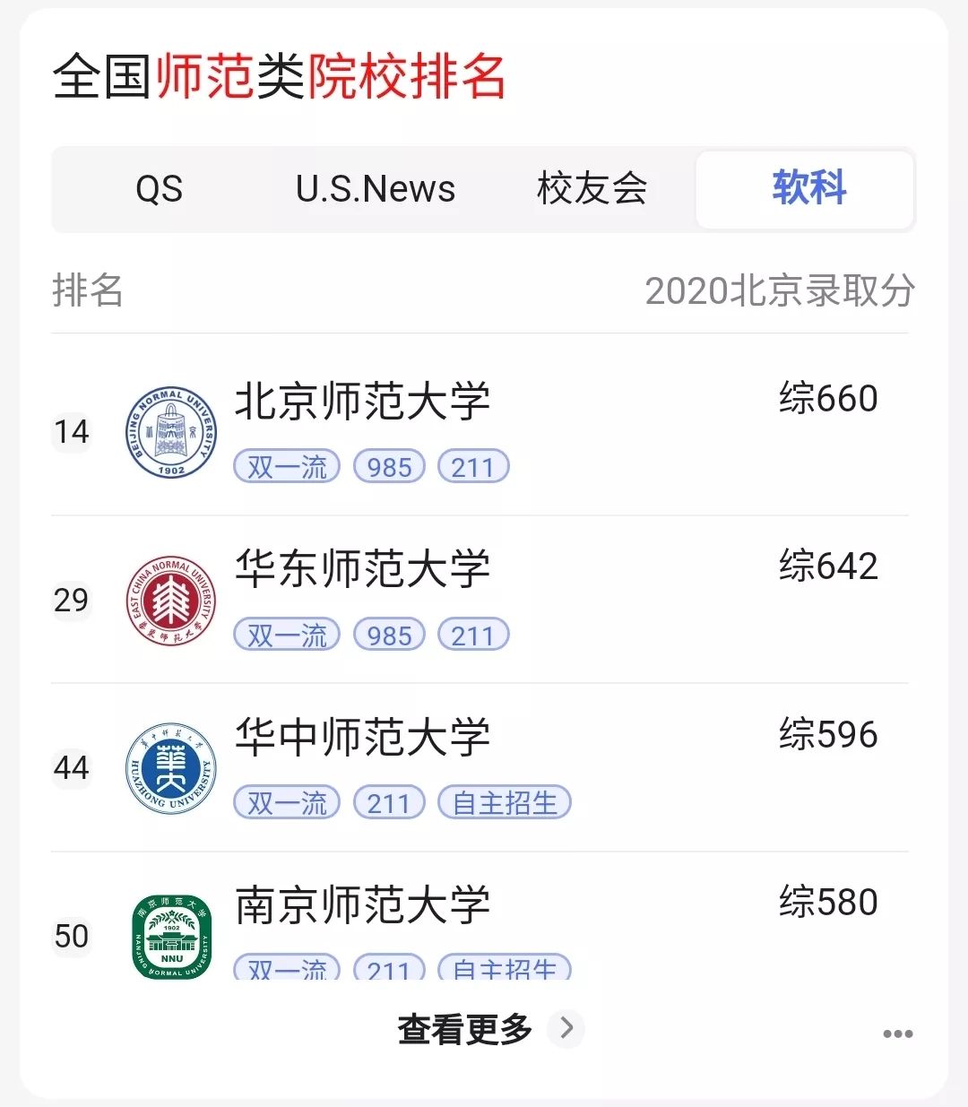 各大平臺,其給出是數據,會有一些共性。比如,北京師范大學不管怎么排,基本都會排在第一名。沒辦法,這就是實力與顏值的絕對優勢了!但是,大家也很容易發現,除了北師大以外,其他一些師范類院校,在每一個平臺的排名都不太一樣。