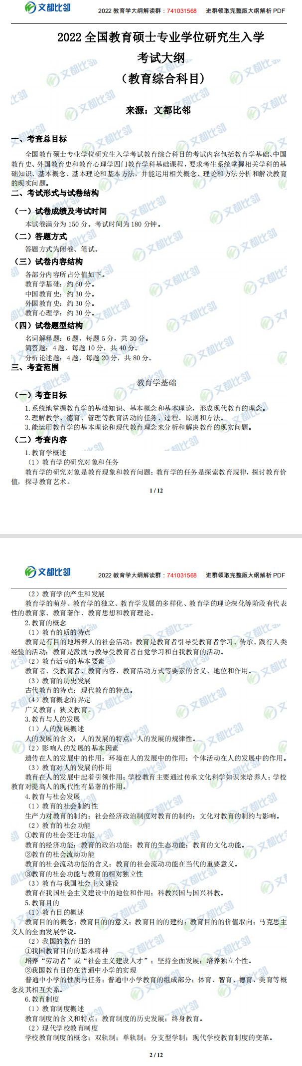 2022全國教育碩士專業學位研究生入學考試大綱 (教育綜合)在9.15日終于和同學們見面了,下面隨陜西文都考研小編一起來看下大綱內容及專業解析 。