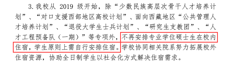 ??復旦大學從2019級開始,除了幾個計劃專項外,不再安排住宿。當然,學校也表明,學生原則上要自行安排住宿,但是學校會去拓展校外住宿資源,協助學生解決住宿問題。(很人性化了~) 當然,大多數院校還是都提供宿舍的,在此提醒20考研的小伙伴們,在選擇學校之前,一定要了解清楚學校各方面的政策,包括報考條件、學費、獎助學金、住宿等等。