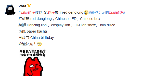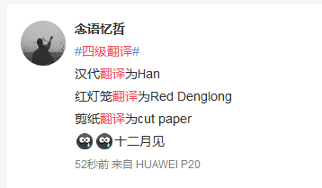 ??今天,英語四六級如約而至,很多考生吐槽說自己四級作文寫的是希望小學(xué)一日游,請問你你四級答題的感jio認(rèn)真的?陜西文都考研小可愛一直很用心的跟進(jìn)著四級考試的考情信息,這不#四級作文##四級裸考#的話題不斷上漲,很多考生吐槽說今四六級自創(chuàng)單詞,紅燈籠翻譯成了red denglong 。讓小可愛笑出了內(nèi)傷,這屆考生太難帶了,同樣是九年義務(wù)教育,為什么這屆考生就這么優(yōu)秀?不過#四級作文#的新聞報(bào)道形式著實(shí)有些令人出乎意料,難道上半場的四級考試就這么涼啦?來看看當(dāng)時(shí)人怎么說的: