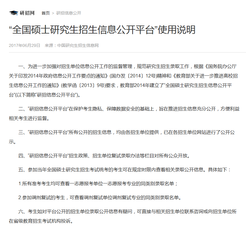 ??一、研究生招生信息公開平臺說明