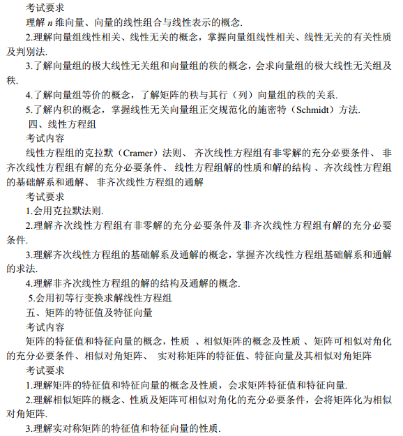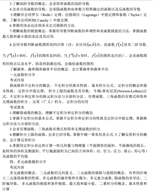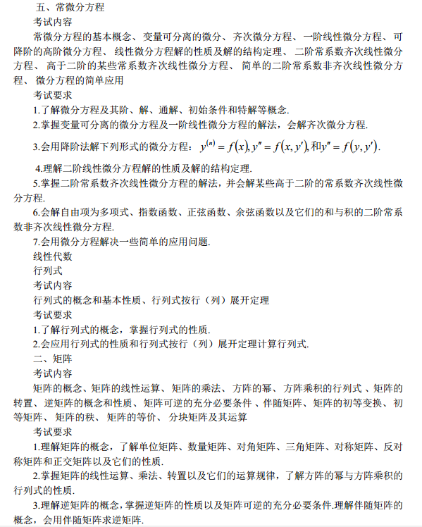 2019全國研究生考試初試科目:考研數學二大綱原文(完整版