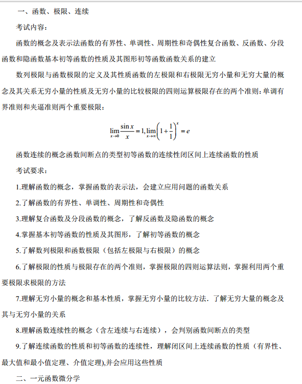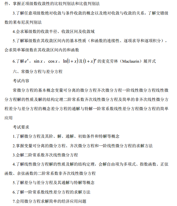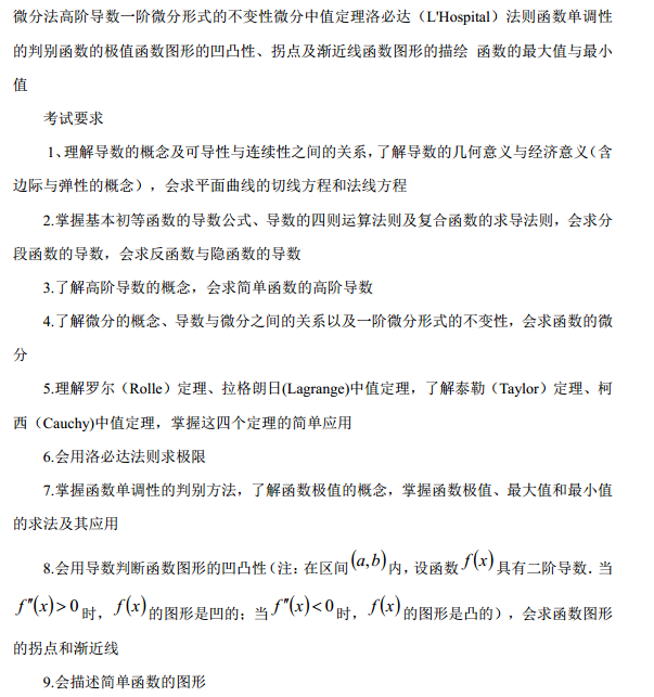 2019全國研究生考試初試科目:考研數學三大綱原文(完整版