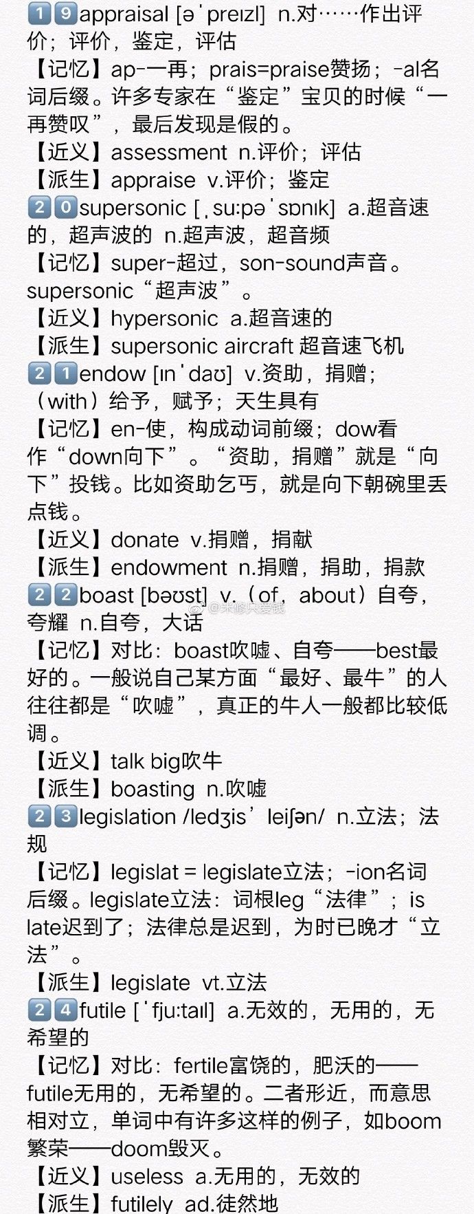 2019年全國碩士研究生招生考試初試時間為2018年12月22日至12月23日。網上報名時間為2018年10月10日至10月31日,預報名時間為2018年9月24日至9月27日,大家都知道考研英語詞匯是考研英語的基礎,詞匯不扎實,還想要拿高分,哼哼,天方夜譚對不對?詞匯和語法,是閱讀的基礎,而且考研英語中閱讀占比也是蠻大的,告訴大家一個好消息,譚劍波考研英語將于今天定制英語詞匯百日沖刺全程陪伴各位備戰(zhàn)初試,今天陜西文都考研總部小編給大家整理了關于波波每日一講:譚劍波考研英語百日沖刺全程陪伴第三十六天的知識點,如有需要及時加入陜西文都19考研交流群。