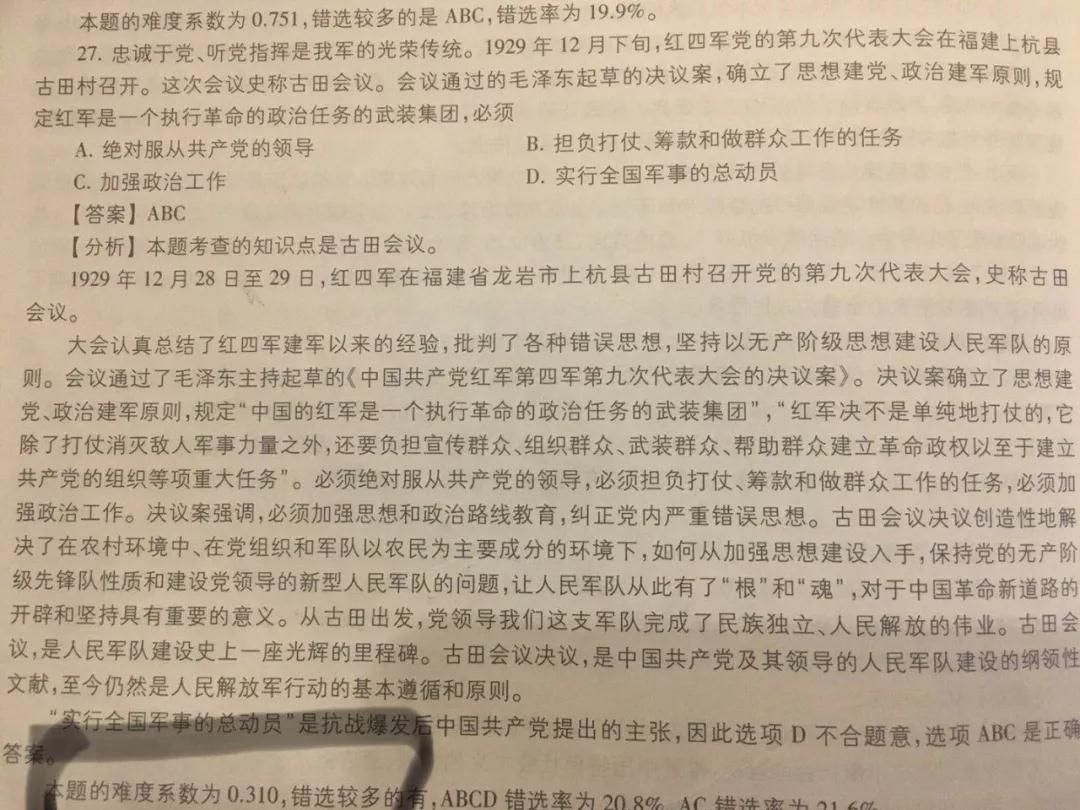 (2018考研多選題)27.忠誠于黨、聽黨指揮是我軍的光榮傳統。1929年12月下旬,紅四軍黨的第九次代表大會在福建上杭縣古田村召開。這次會議史稱古田會議。會議通過的毛澤東起草的決議案,確立了思想建黨、政治建軍原則,規定紅軍是一個執行革命的政治任務的武裝集團,必須()