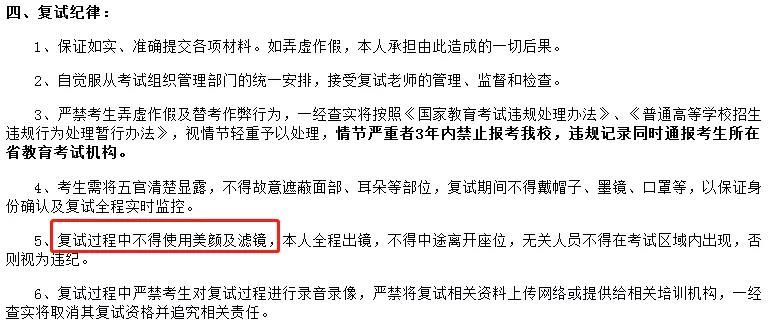 天津大學要求復試過程中不得使用美顏及濾鏡。