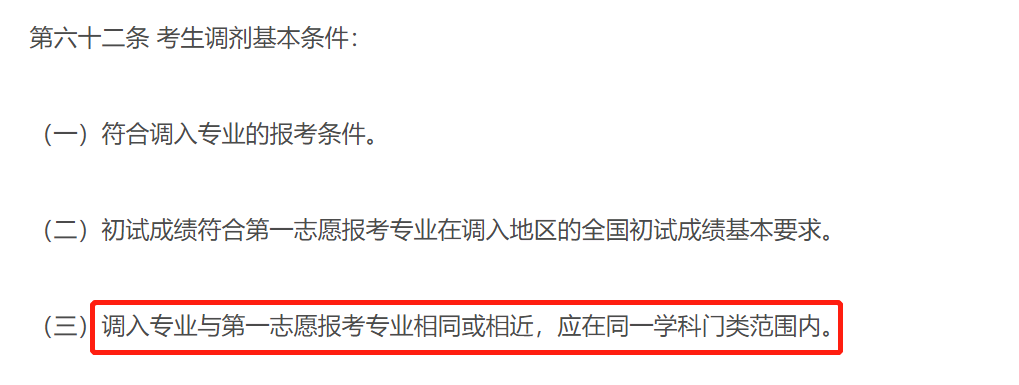 第一志愿報考非照顧專業的考生若調入照顧專業,其初試成績必須符合調入地區對應的非照顧專業學科門類(類別)的全國初試成績基本要求。體育學與體育碩士,中醫學、中西醫結合與中醫碩士,工學照顧專業之間調劑按照顧專業內部調劑政策執行。