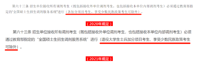 變化3:將2020年規定中的“各加分項目考生”變為“退役大學生士兵加分項目考生”。