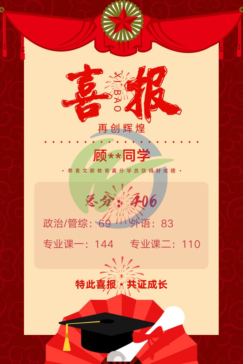 文都高分學子初試捷報——406分