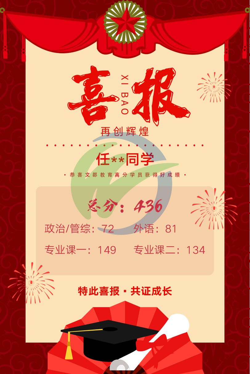 考研初試成績已經出來啦,文都學子喜報頻傳,文都老師快被大家的私信給淹沒啦,數三滿分的答卷,藝考滿分的手繪卷,管綜的高分,不得不說這屆學員真的太優秀了!所有的付出和努力,吃過的苦,熬過的夜都作數,不必羨慕別人的分數,從最細微處做起,明年的高分榜一定有你。接下來一起看看我們文都考研優秀的學子的初試捷報吧。