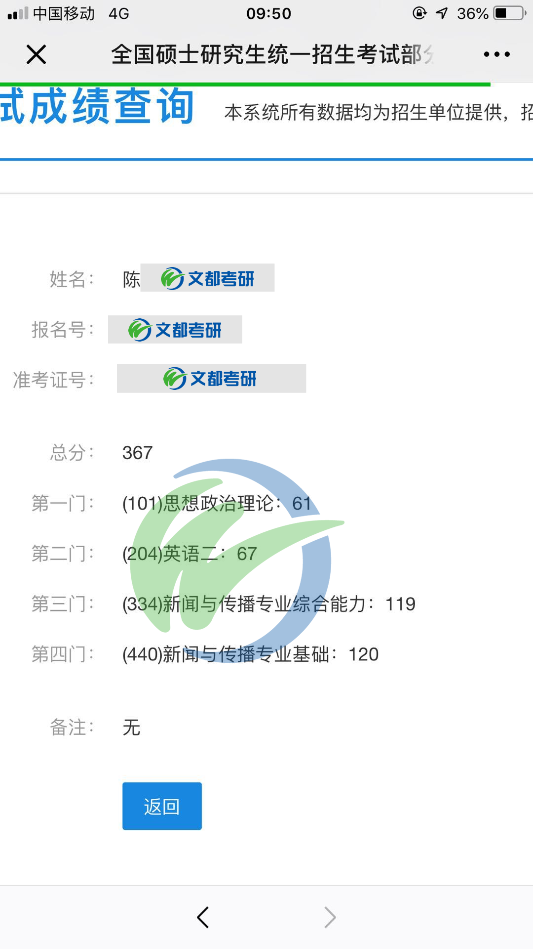 2019全國研究生招生考試初試成績(jī)已于本月15日起陸續(xù)公布,西北文都考研2019屆考研學(xué)子用成績(jī)證明自己過去日以繼日的付出并沒有白費(fèi)。近日,西北地區(qū)各省市高分學(xué)員紛紛發(fā)來自己的研究生初試成績(jī),那一張張興奮的臉龐洋溢的喜悅,也感染著文都考研的全體老師,文都老師紛紛賀電并表示:只要文都學(xué)子如愿進(jìn)入自己理想的院校,就是對(duì)自己最好的回報(bào)。接下來,就跟著西北文都考研小編一起看看我們文都考研優(yōu)秀的學(xué)子發(fā)來的喜報(bào)吧。