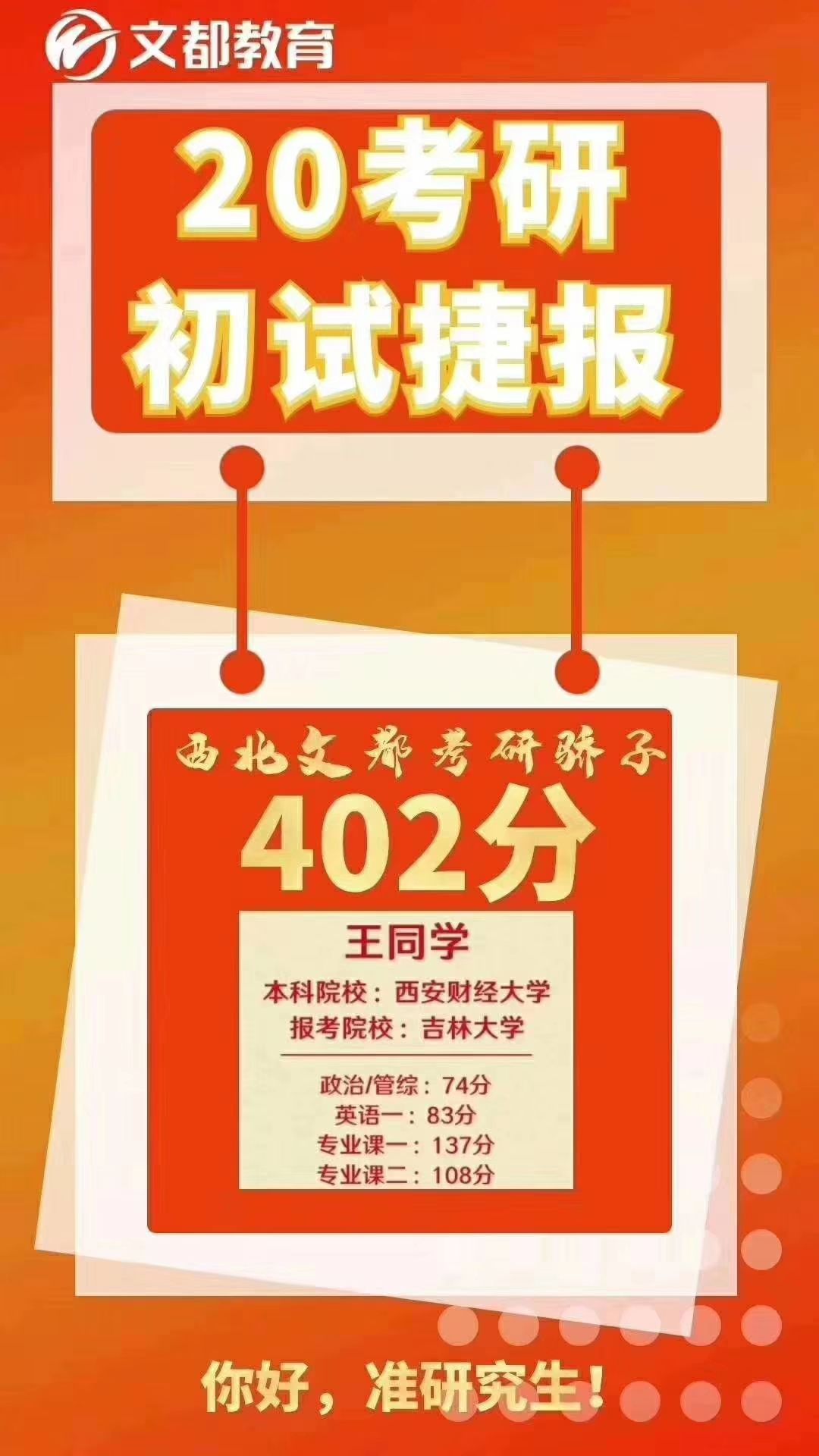 文都簡介:陜西文都,成立于2009年,致力于為考研學(xué)子提供一站式全方位輔導(dǎo)服務(wù)。目前,陜西文都已建立起包括遠(yuǎn)程一卡通、全科彩虹卡、單科通關(guān)班、短期特訓(xùn)班、全科特訓(xùn)班在內(nèi)的考研課程體系,基本覆蓋了考研學(xué)子所有課程需求。陜西文都教育共有12大分校,在西安高校建立起58個(gè)教學(xué)點(diǎn),每年招生規(guī)模達(dá)萬余人,400+高分學(xué)員層出不窮,作為陜西省著名考研輔導(dǎo)品牌,以其先進(jìn)的教學(xué)理念、優(yōu)質(zhì)的學(xué)員服務(wù)和出色的教學(xué)成果,贏得了眾多考研學(xué)子的好評和信賴。