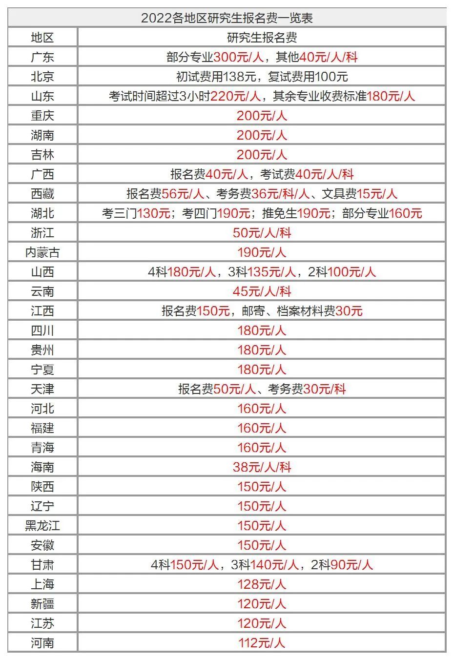 2022考研報名即將在9-10月展開,只有繳費成功才算報名成功,需要網(wǎng)上支付繳費的要準(zhǔn)備好銀行卡信息和費用,提醒各位考生做好相關(guān)準(zhǔn)備。文都考研小編根據(jù)2021各省招生辦公室考試院公告為大家梳理了往年的研究生報考費用,僅供參考,具體情況以今年公告為準(zhǔn)。