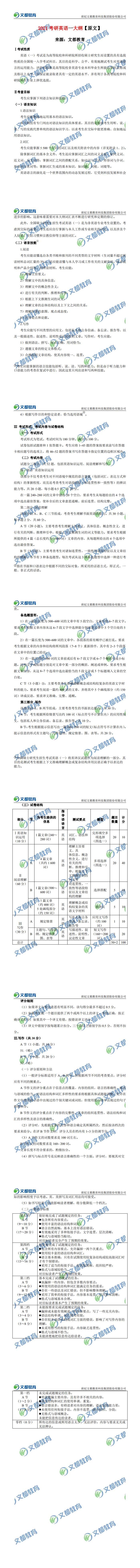 2021年全國碩士研究生招生考試英語考試大綱正式發布了,文都考研名師將根據各科目2021考研大綱內容為考生帶來2021考研大綱解析和后期備考指導,希望對你利用2021考研大綱復習有所幫助。
