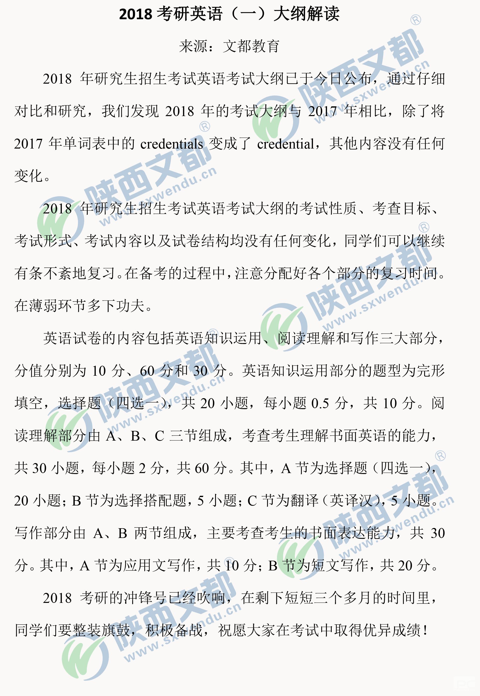 2018考研英語(一)大綱解讀
