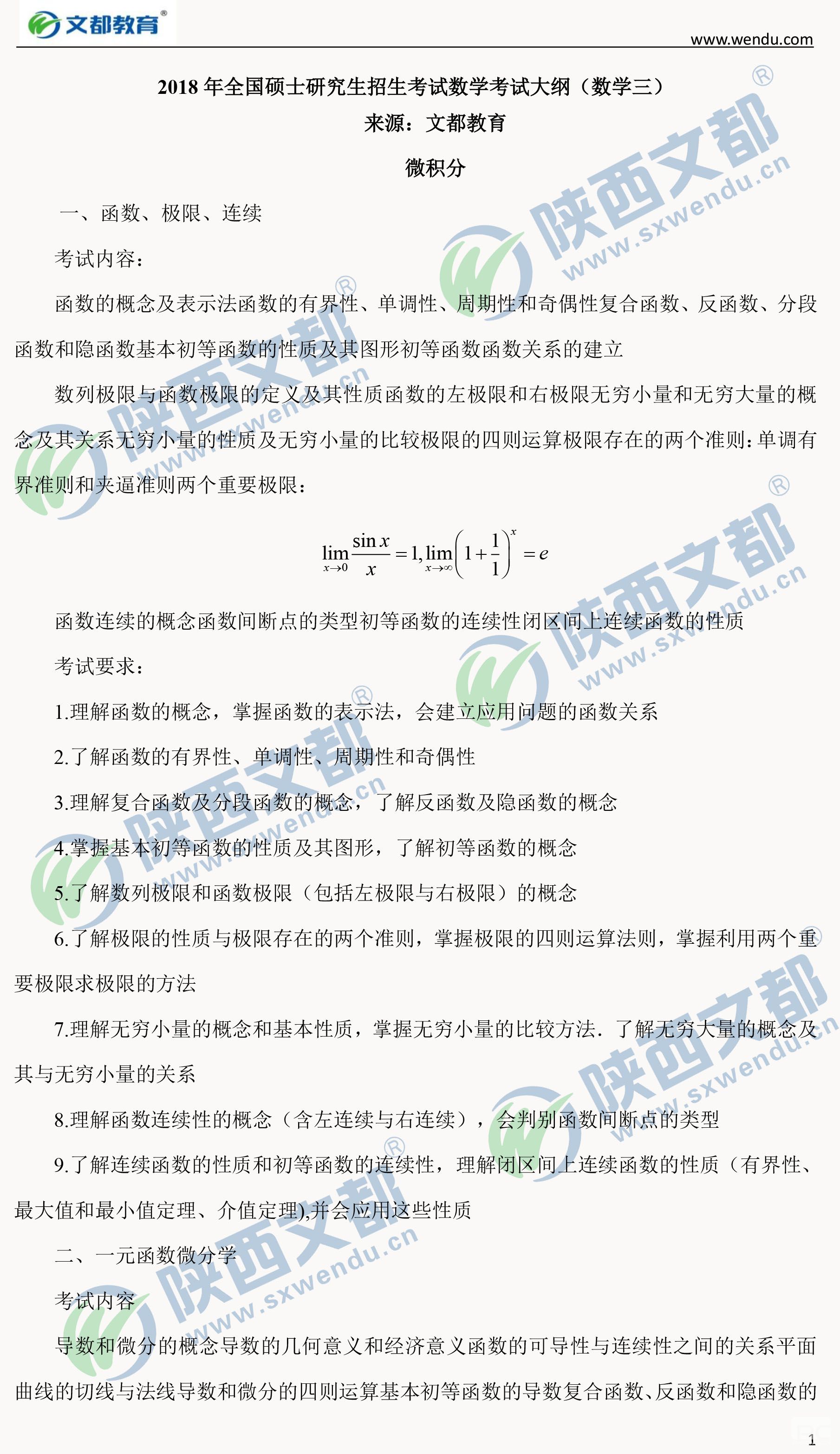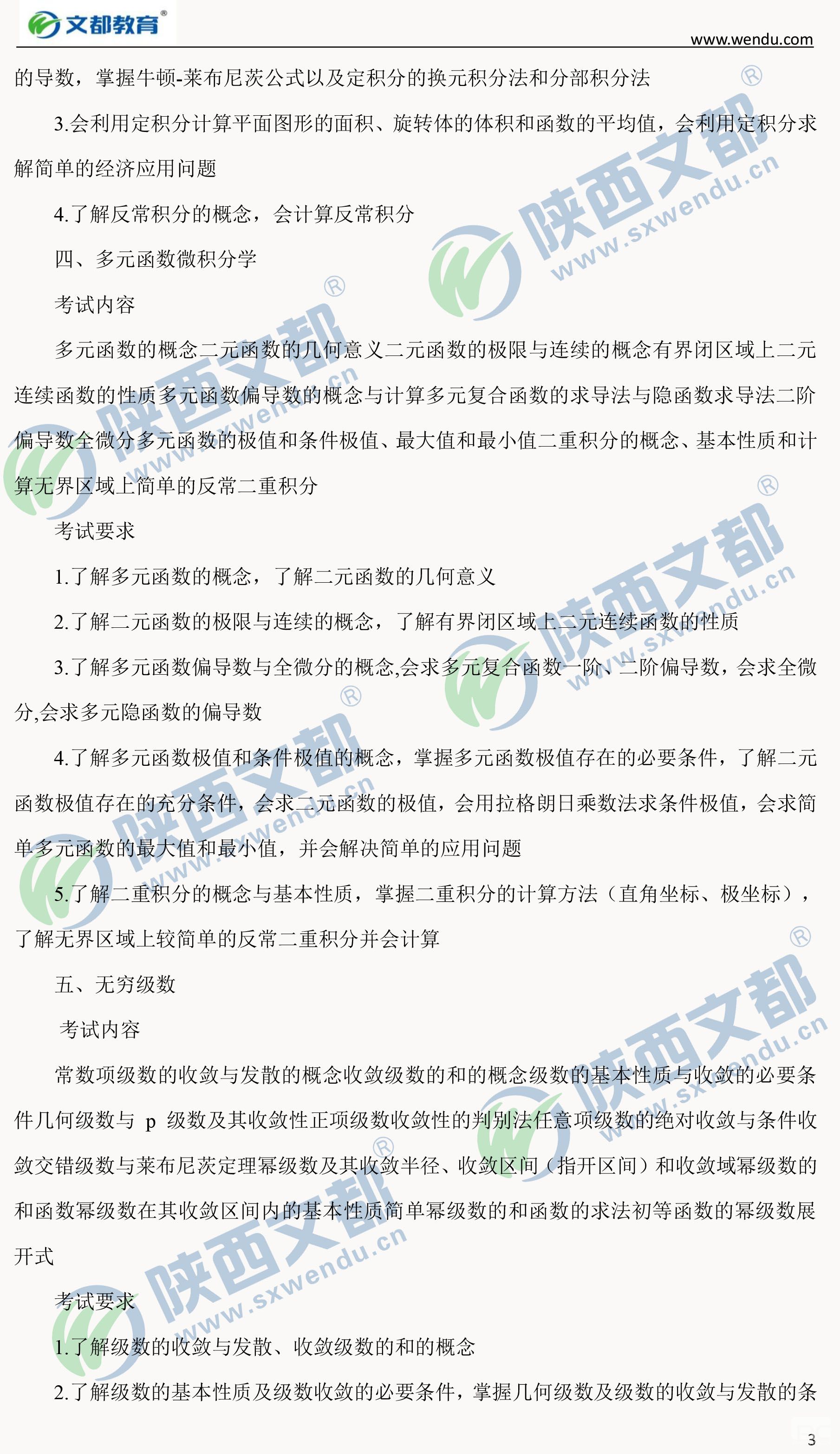 2018年全國碩士研究生招生考試數學考試大綱(數學三)