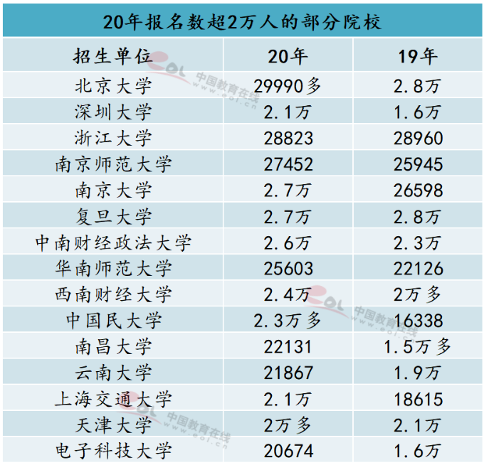其他未公布報(bào)考人數(shù),但可能也是考研“扎堆”的院校:武漢大學(xué)、華中科技大學(xué)、四川大學(xué)、山東大學(xué)、廈門大學(xué)、上海大學(xué)。