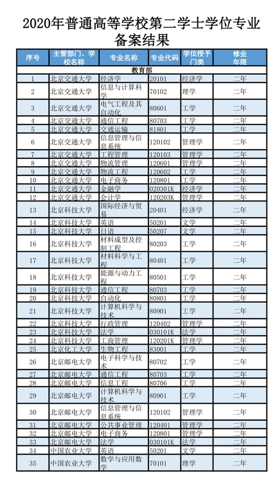 教育部辦公廳關(guān)于公布2020年普通高等學校第二學士學位專業(yè)備案結(jié)果的通知