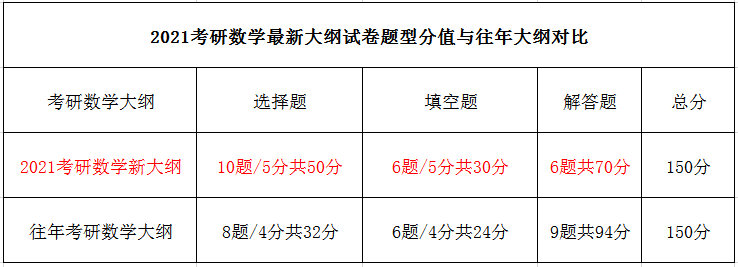 2021考研新大綱題型與分值變動: