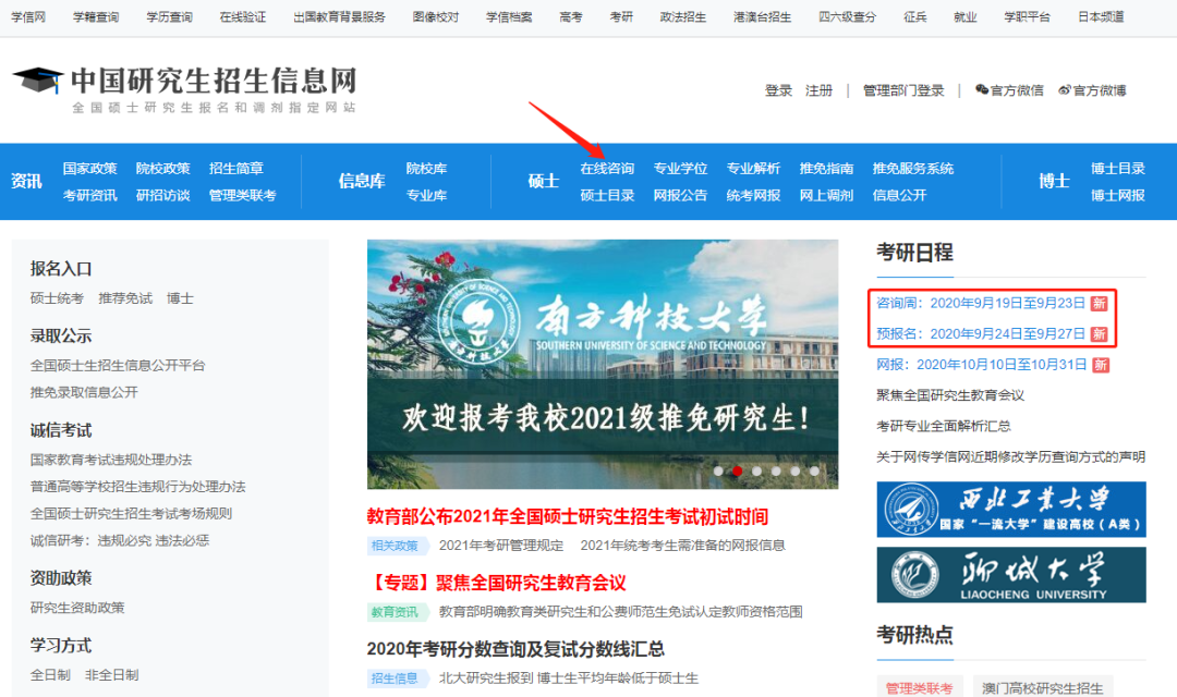 9月19—9月23日,在中國研究生招生信息網站(http://yz.chsi.com.cn/),各招生單位會在既定的時間段為大家在線答疑。