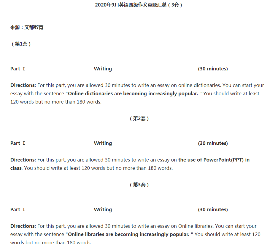 2020年9月大學(xué)英語(yǔ)四級(jí)作文真題匯總(含3套試題)