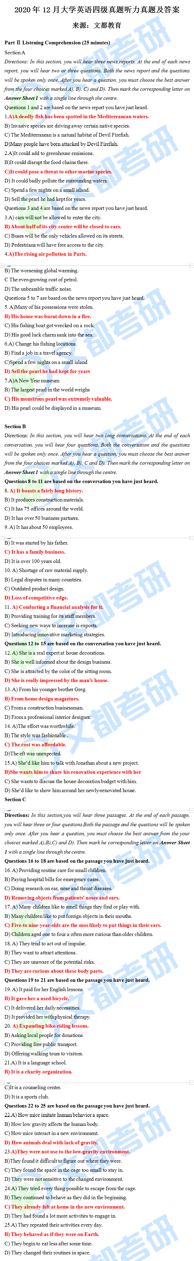 2020年12月英語四級考試聽力原文(完整版)(第1套)