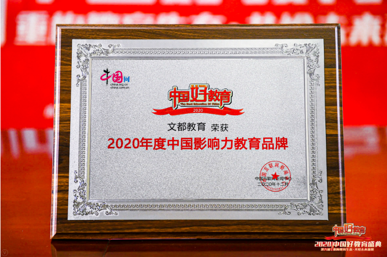 2021年1月13日,由中國互聯網新聞中心(中國網)主辦的“2020年中國好教育盛典暨中國教育家年會”在北京正式啟幕。活動中,文都教育憑借優質的教學口碑與持續的品牌影響力脫穎而出,榮獲“2020年度影響力教育品牌”獎項。