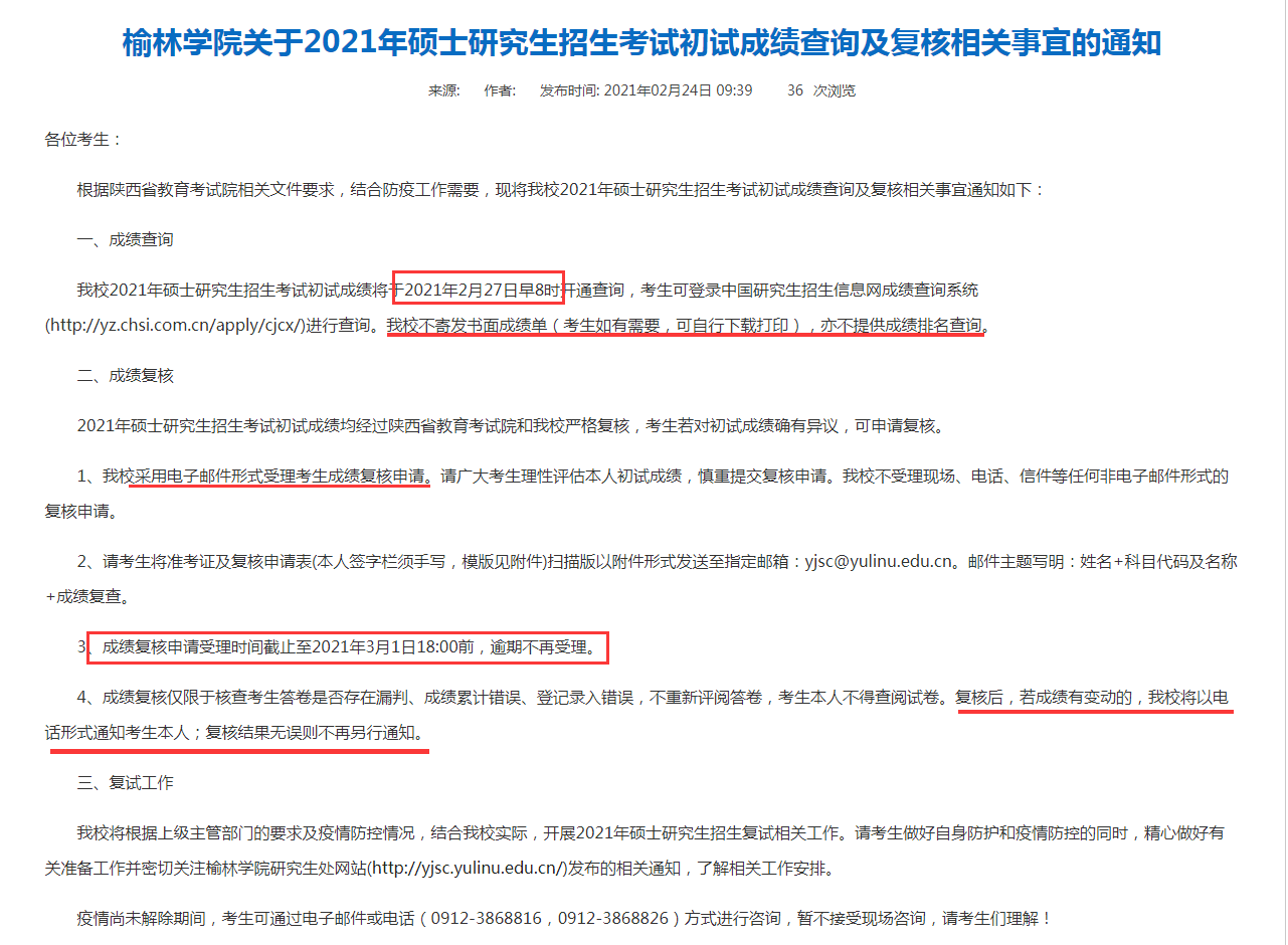 榆林學院2月24日發布2021年研究生招生考試初試成績查詢公告。