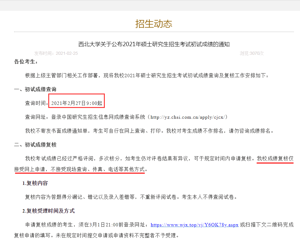 西北大學(xué)2月25日發(fā)布2021年研究生招生考試初試成績(jī)查詢公告。