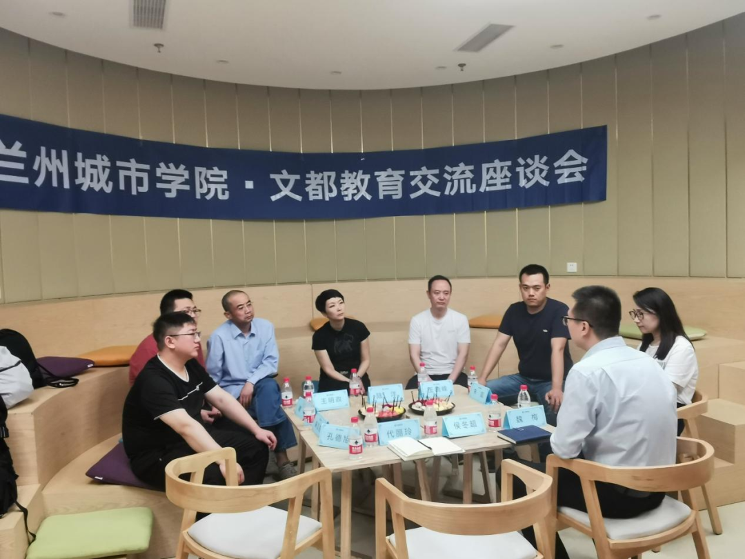 圖 | 蘭州城市學院考察團與文都教育總校長助理侯冬超等相關負責人交流座談。