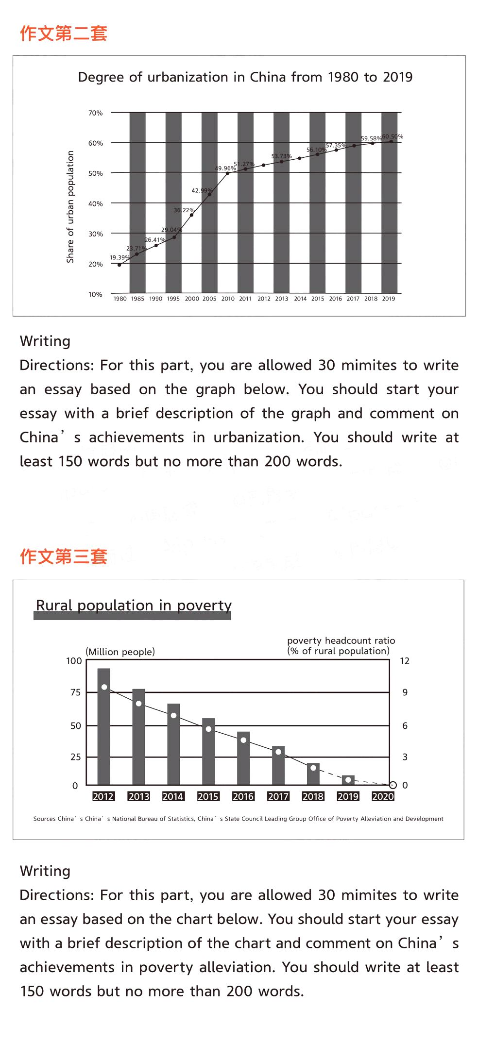 Directions: For this part, you are allowed 30 mimites to write an essay based on the graph below. You should start your essay with a brief description of the graph and comment on China 's achievements in urbanization. You should write at least 150 words but no more than 200 words
