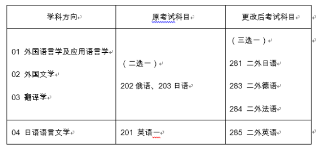 關于變更外國語學院2022年碩士研究生招生考試部分考試科目的公告