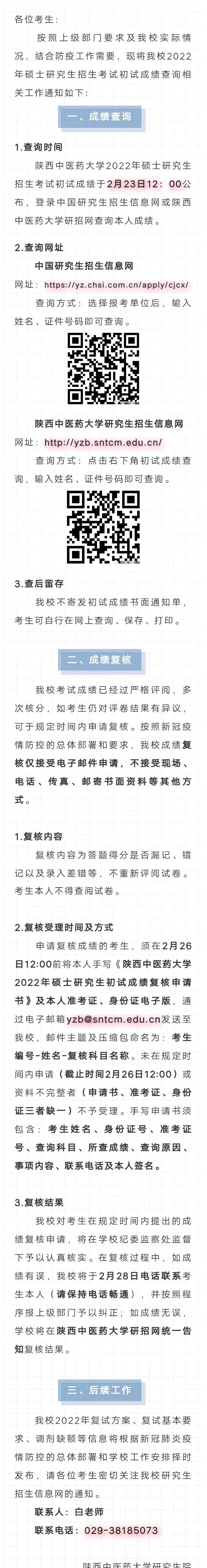 陜西中醫(yī)藥大學(xué)2022年研究生考試初試成績(jī)將于2月23日12:00