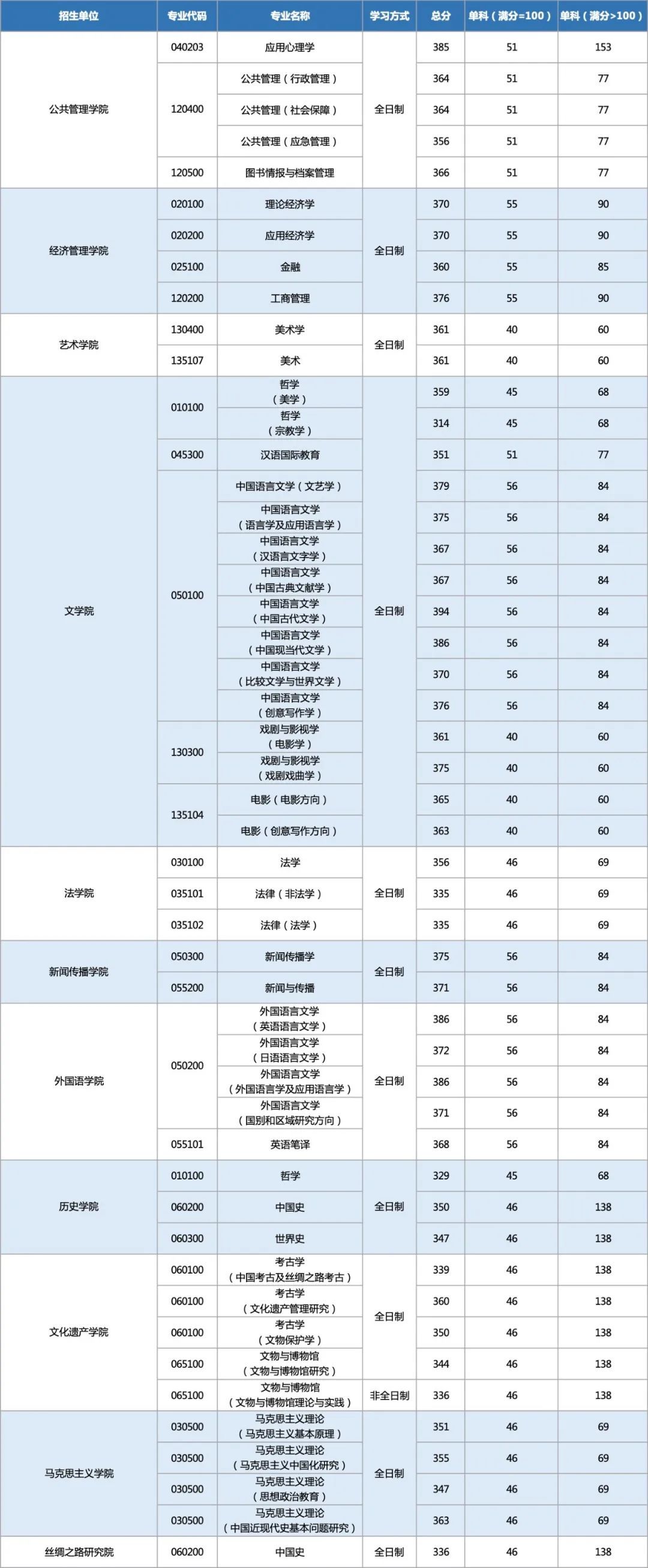 西北大學2022年碩士研究生招生考試復試分數線