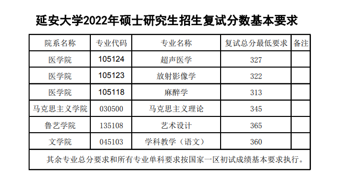 1. 延安大學2022年碩士研究生招生復試分數基本要求