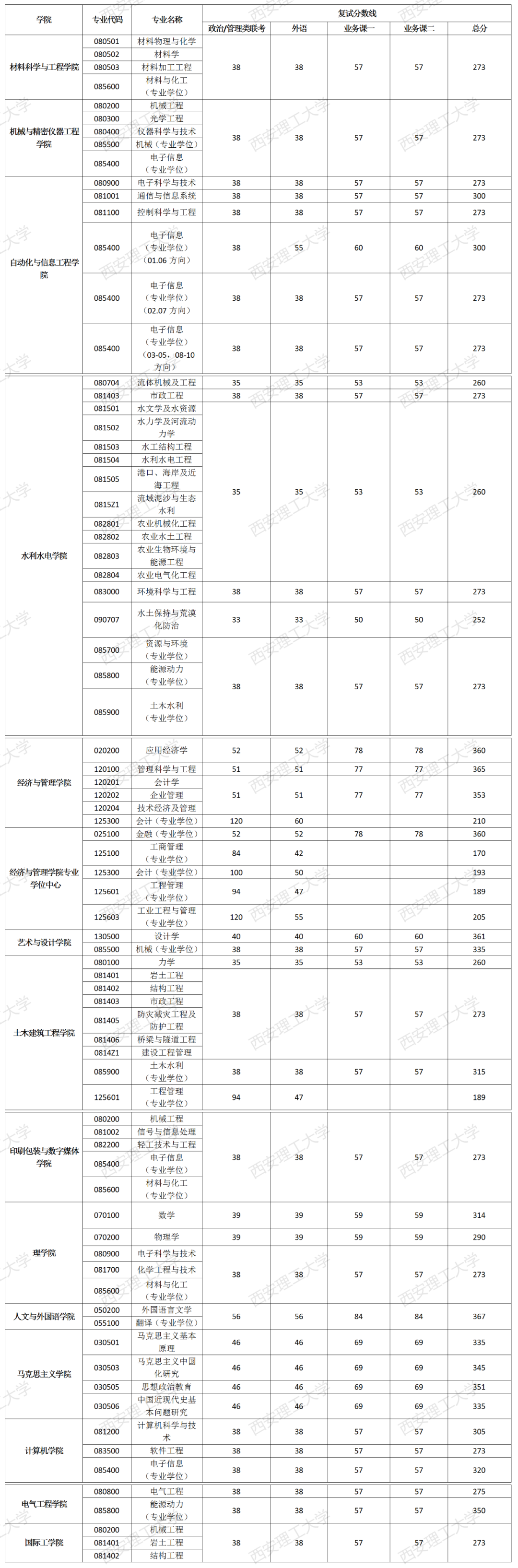 西安理工大學2022年碩士研究生招生考試復試分數線
