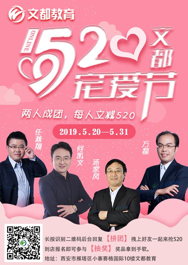 是不是被震撼到了?此次優惠活動共持續12天,并且兩人成團每人立減520元,現場還能參加抽獎活動。今年的獎品不僅有流行的星空棒棒糖,還有何凱文和湯家鳳老師的親筆簽名本。如果你感興趣,不妨來參加文都寵愛節活動吧!5月20日讓我們相約文都教育!