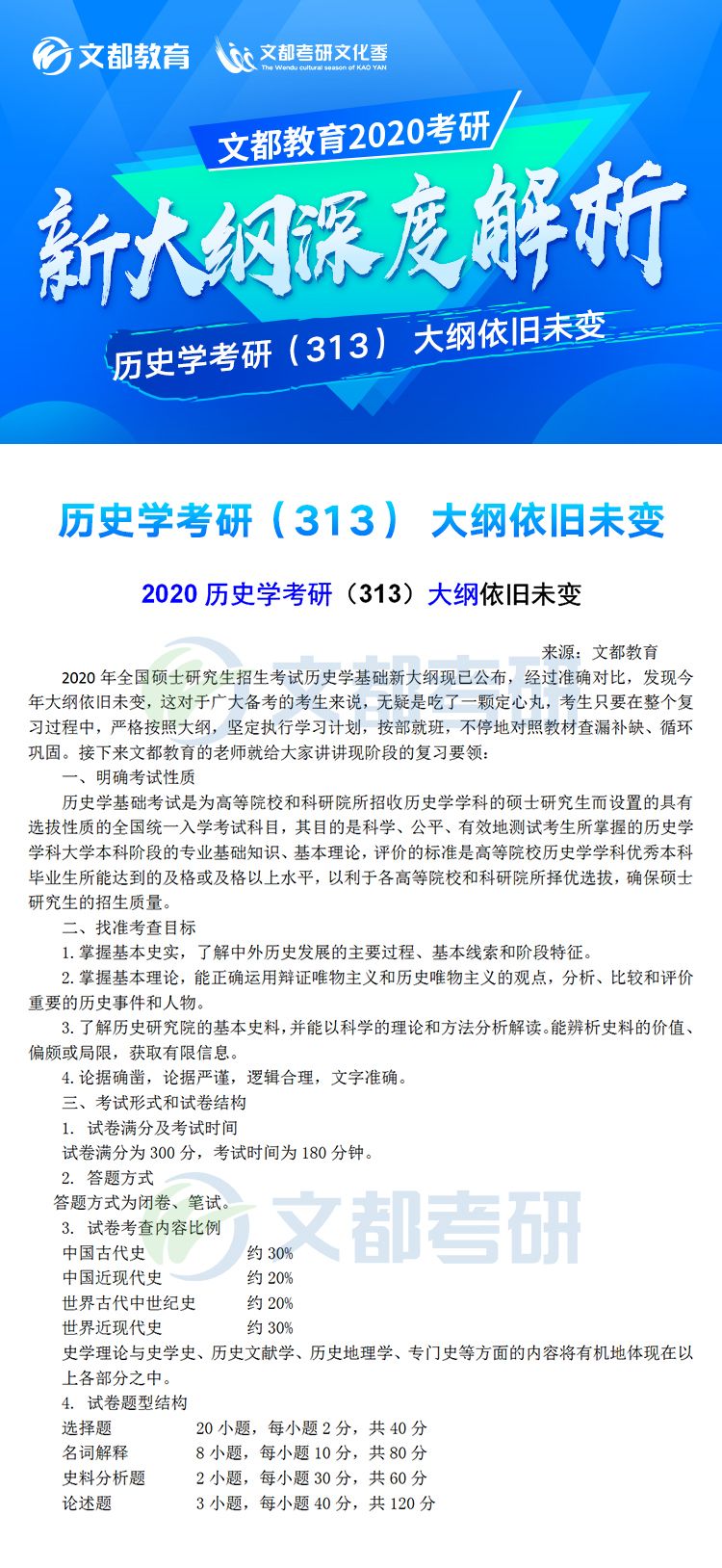 2020年全國碩士研究生招生考試各科目考研大綱已于7月8日發布,對于考生來說這是非常好的消息,有充足的時間根據新的大綱知識點進行專業課復習,考研歷史學大綱對參加研究生考試的考生考研歷史學復習具有指導意義,它可以有效矯正考生復習方向偏差的問題,讓復習方向化零為整,提高效率。如果你還不清楚,不妨看看2020年全國碩士研究生招生考試歷史學考試大綱的文章,如有需要及時加入陜西文都20考研交流群, 陜西文都考研網持續為您提供考研所需的相關指導信息。20考研資料共享:【互動可加群】丨官方網站【@陜西文都考研