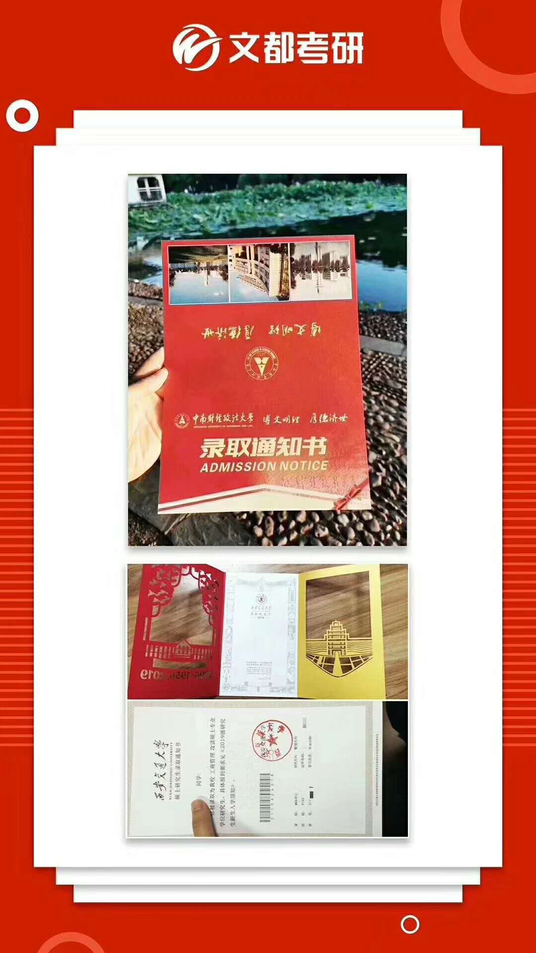 這是一份來自西北文都考研2019屆高分學員的錄取通知喜報,文都考研致力于高等教育培訓領域,作為陜西省著名考研輔導品牌,以其科學的教學理念,良好的學員服務和顯著的教學成果,羸得了眾多考研學子的好評和信賴。感謝百萬莘莘學子選擇文都,文都考研秉承教育讓生命更美好,在往后的日子里文都考研將繼續為廣大考生提供2020考研資訊和考研培訓輔導。考研報名時間、考研復習資料,考研復試調劑,考研真題下載以及線上線下考研輔導課程學習,文都考研祝您考研成功!