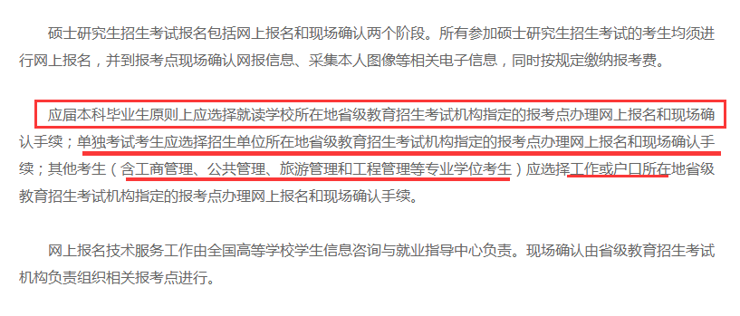 注意:應屆生和往屆生(包括工作考研黨):其中招生考試公告中提到。應屆生原則上選擇其所在院校的地方參加考上,但是一些院校或者一些地區會要求學生在報考院校的所在地參加考試,以及一些院校對于考點有特殊要求都會在其官網三及時公布,希望大家多多關注院校信息。