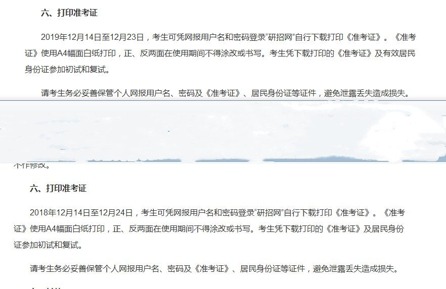 今年打印準考證時間為:2019年12月14日至12月23日,共計10天,比去年減少一天。大家一定要注意:在打印準考證的第一天,下載準考證人數較多,可能會有卡頓導致長時間無法登入的情況發生,建議大家在開放下載2-3天后進行打印,會更加節省復習時間喲!另外,一定不要拖到最后一天再下載,避免產生意外情況。
