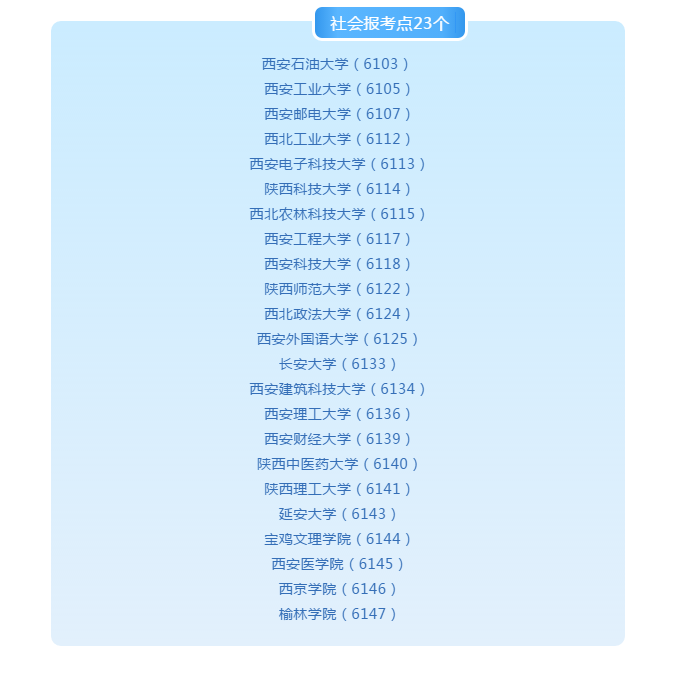 西北農林科技大學、延安大學、陜西理工大學、寶雞文理學院、榆林學院的本校應屆本科畢業生報考省內其他招生單位的可在本校考點報考;省內其他高校報考西北農林科技大學、延安大學、陜西理工大學、寶雞文理學院、榆林學院的應屆本科畢業生也可在考生所在地市考點報考。