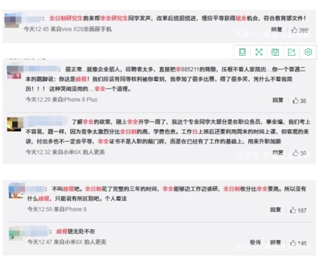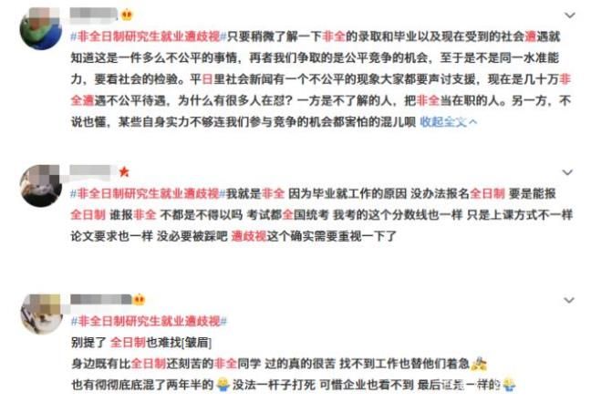 付出了同樣甚至更多努力的非全日制研究生,為什么要被歧視?網(wǎng)友紛紛發(fā)表了自己的想法。