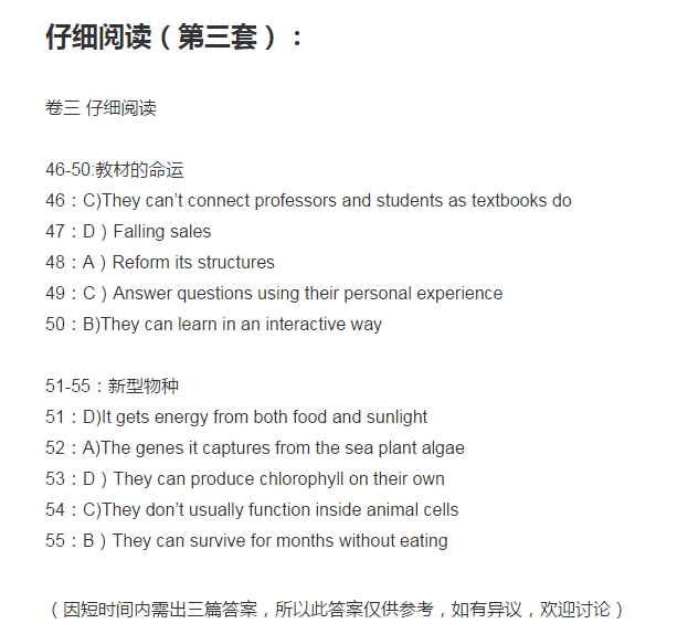 #英語四級#2019下半年英語四六級考試閱讀答案