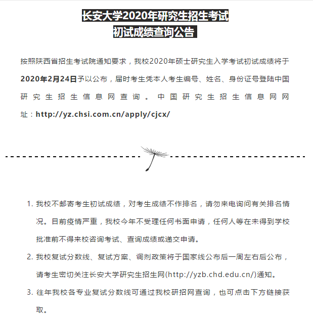 長安大學2020年研究生考試初試成績將于2月24日公布