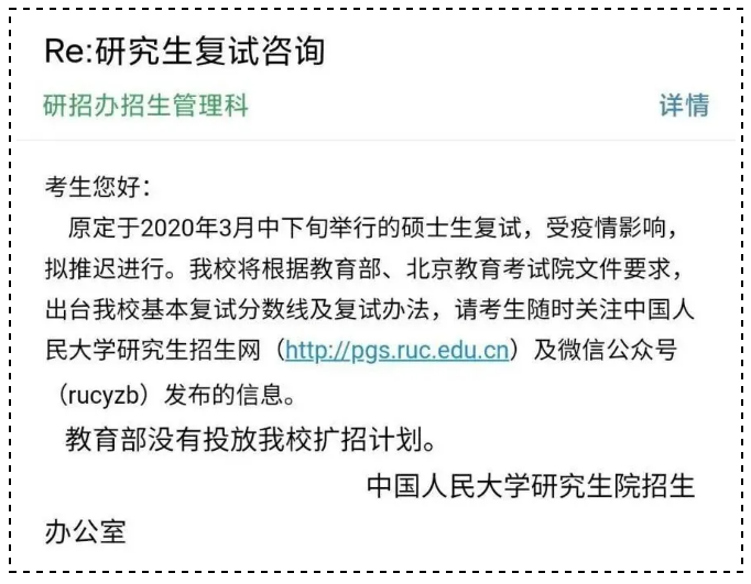 ● 中國人民大學:教育部沒有投放我校擴招計劃;