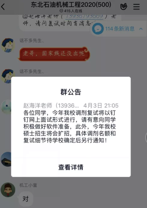 近日東北石油大學機械工程qq群發布通知:調劑復試將以釘釘網上面試形式進行!
